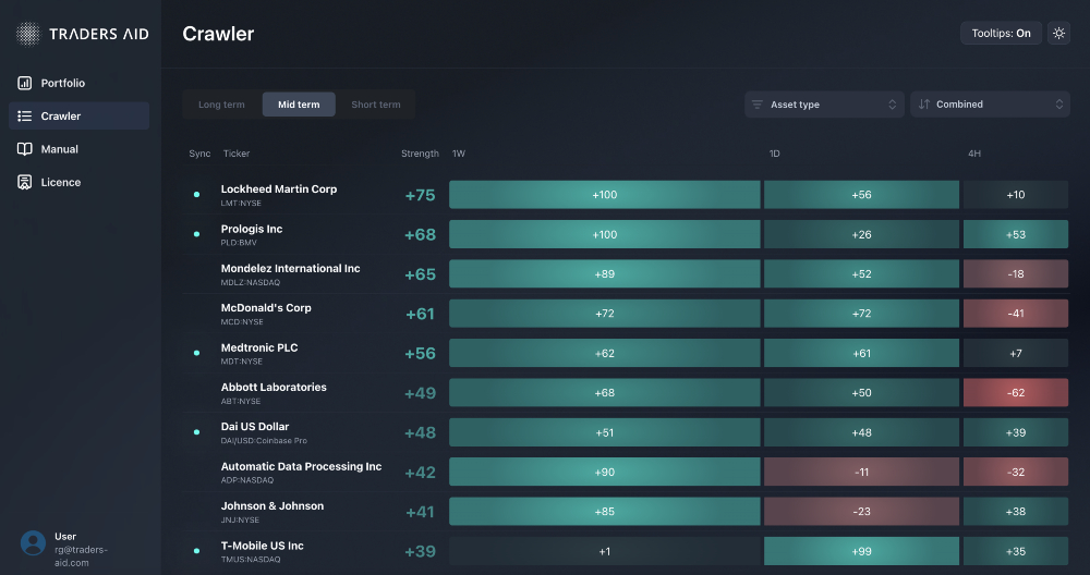 The Crawler feature in Traders Aid's Technical Analysis Tool offers a dynamic way to monitor and analyse various assets. This powerful tool is designed to help traders identify opportunities and trends across different asset types, ensuring that you have all the information needed to make informed trading decisions.